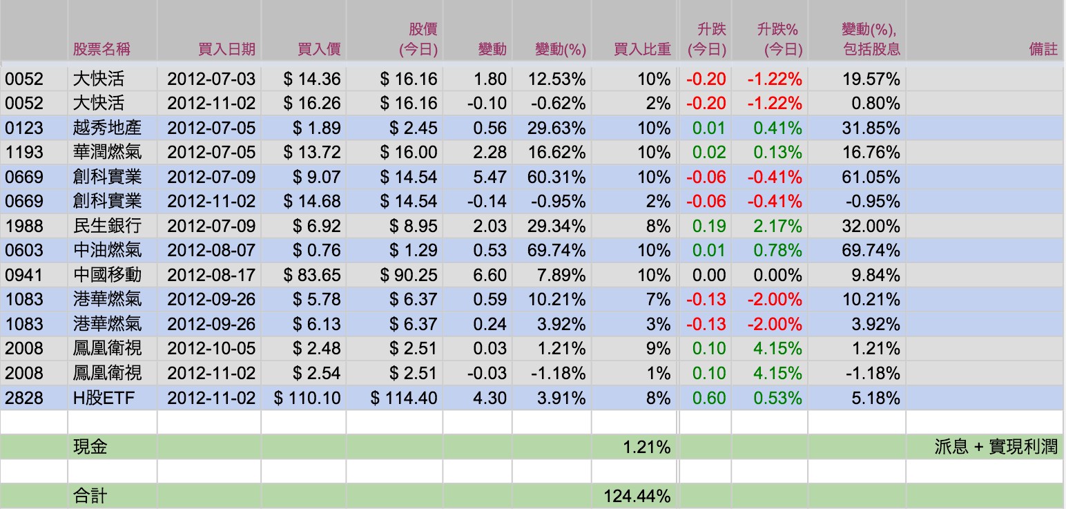 增加股票數目的缺點是拉低回報 (總不能預期組合內每一隻股票一年間都上升三、四成以上罷!),但可能亦適合作為設立一個新組合的開始。